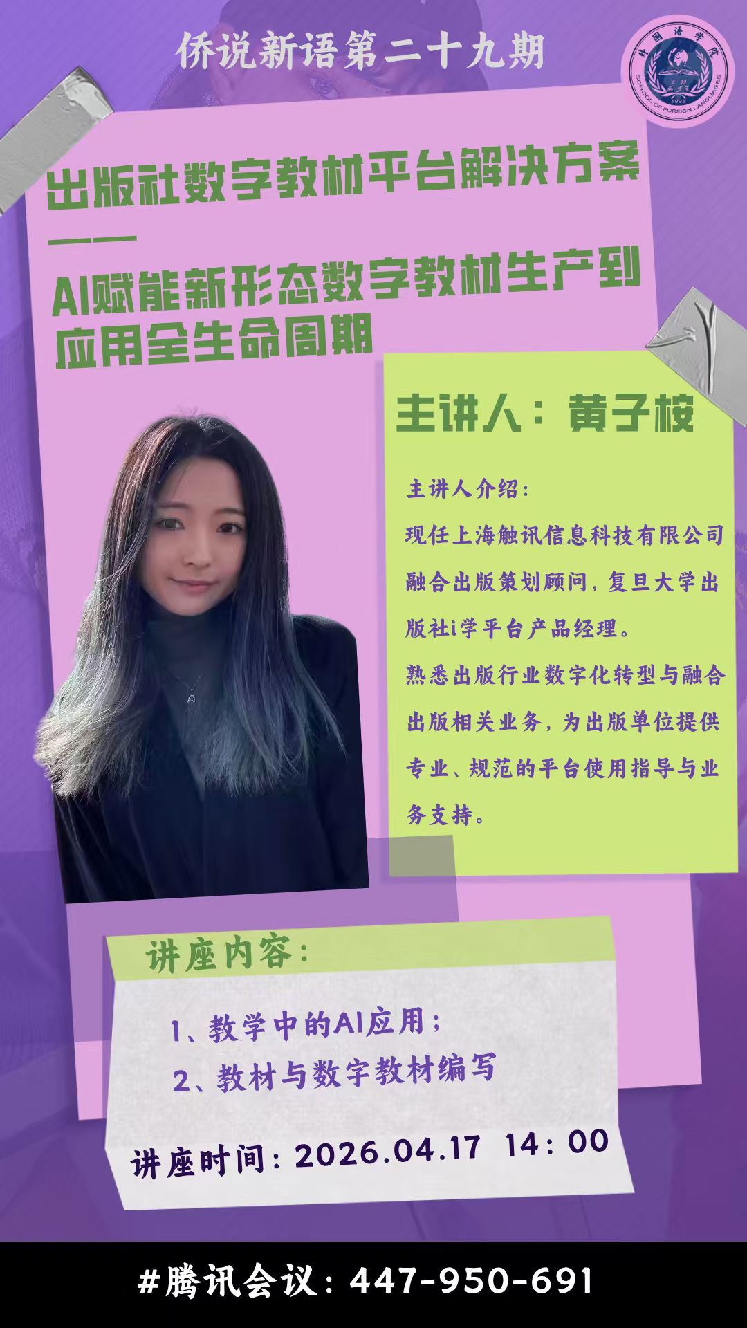 外国语学院举办“AI赋能新形态数字教材”专题讲座 ——探索智慧教学与融合出版新路径