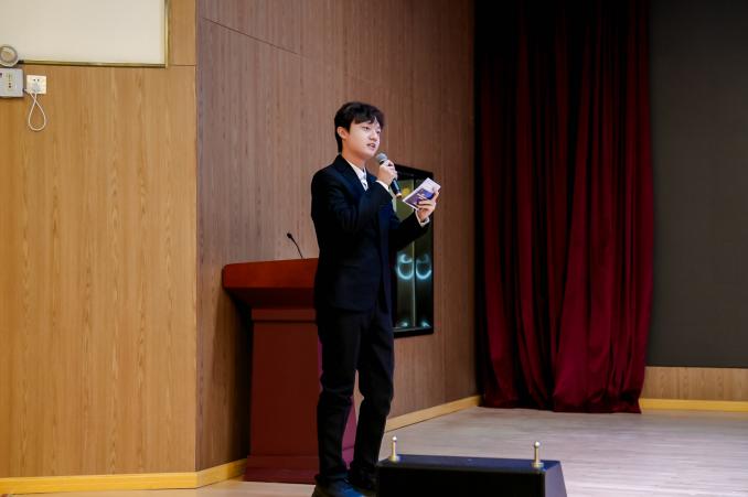 凭借第三届赛事积累的实战经验、对赛事流程的深度了解,以及李立颖老师的推荐,汪劭函在第四届大赛启动前收到了组委会的主持邀请。从幕后备赛到台前主持,身份的转变带来了全新的挑战与成长。为精准呈现赛事特色,他提前研读大赛章程,梳理从初赛到决赛的全流程规则;为贴合英语配音赛事的专业调性,反复打磨主持串词,既确保语言表达的流畅自然,又融入对配音艺术的专业解读,让观众在欣赏精彩赛事的同时,感受语言艺术的魅力。
